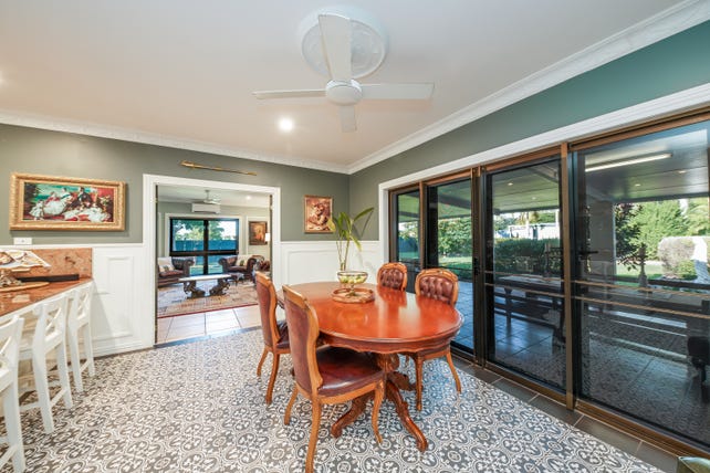 Inside, the formal lounge captures natural light through large windows, enhanced by traditional finishes and classic timber features. The central foyer leads you to a grand dining room and a spectacular kitchen-the true heart of the home. Adorned with solid timber cabinetry, stone benchtops, and a generous 3m breakfast bar, this kitchen combines timeless design with functionality, including a walk-in pantry, gas cooking, double ovens, and space for your wine fridge.